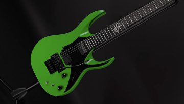 Le diapason mesure 25,5 pouces, et ce modèle est équipé d’un Truss Rod à double action et d’un vibrato Gotoh 1996 Big Block. Pour terminer, l’accastillage est de couleur noire et la guitare arbore une finition baptisée Neon Green Gloss.